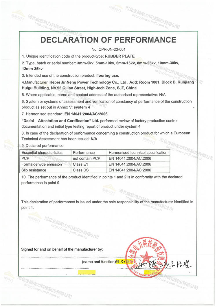 金能絕緣膠墊完成歐盟CE認證,通過歐標E1級環(huán)保標準