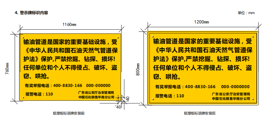 輸油管道線路標(biāo)志牌尺寸