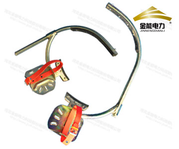 (1)腳扣在使用前,必須對其進行單腿沖擊試驗,方法是將腳扣卡在離地面30cm左右的電線桿上,單腳站立于腳扣上,用最大力量猛踩,檢查腳扣的機械強度是否完好可靠,扣環(huán)是否變形和損傷,防滑膠皮是否可靠。