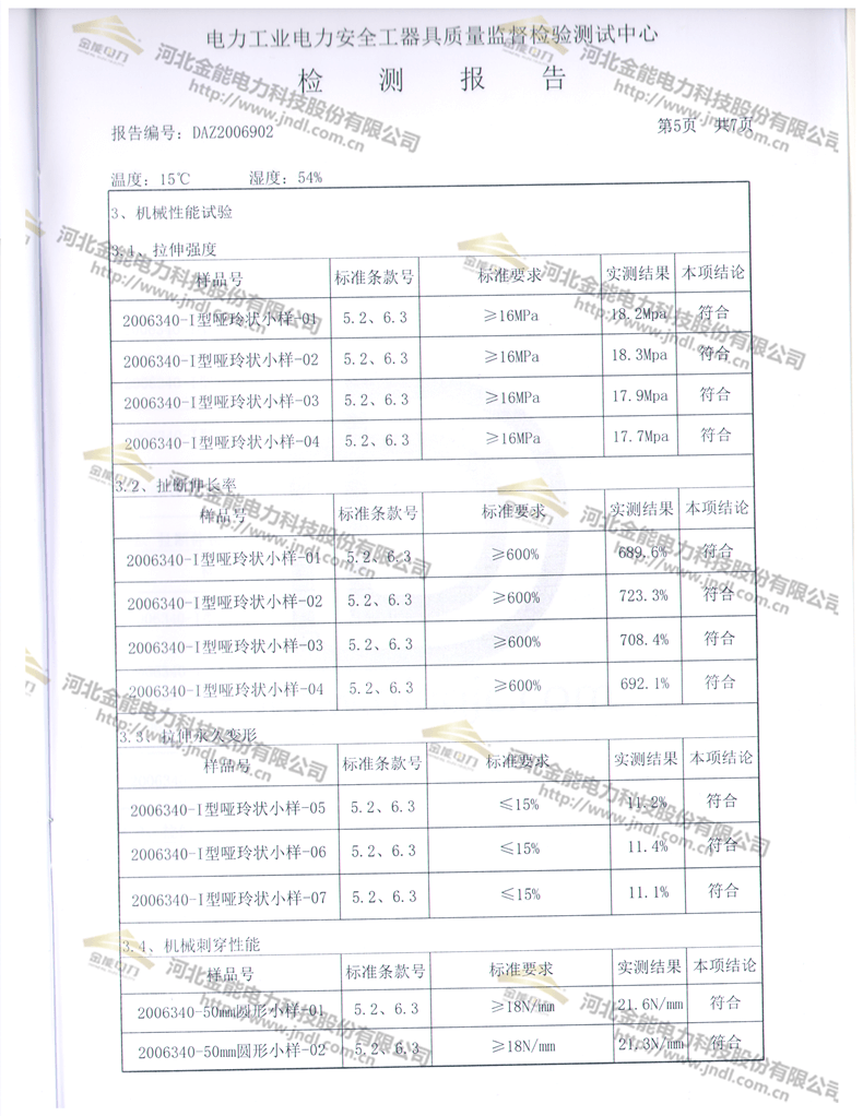 金能電力35kv絕緣手套檢測(cè)報(bào)告